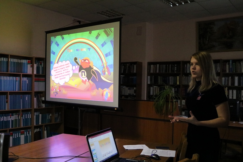 Во время осенних каникул дети из школьного лагеря сада-школы № 68 «Атиква» посетили Публичный центр правовой информации областной библиотеки, где познакомились с детским правовым сайтом www.mir.pravo.by и узнали о своих правах с помощью любимых персонажей из мультфильмов. Новые знания помогли им закрепить отгадывание загадок и весёлая викторина. Ребята отвечали на вопросы по правилам дорожного движения, затем все вместе вспоминали сюжеты сказок, в которых подтверждались или нарушались права человека. В завершении мероприятия все участники получили небольшие подарки.