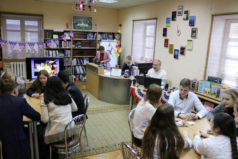 20 ноября в отделе литературы на иностранных языках открылась Неделя американской культуры. В этот день для учащихся правового класса средней школы № 25 г. Гомеля прошел интеллектуальный турнир «Что? Где? Когда?» (тема «All about USA»).