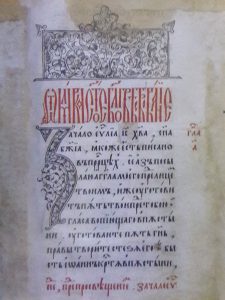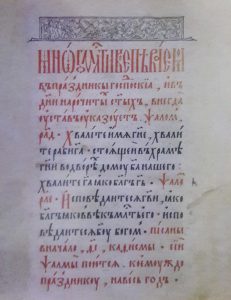 Застаўка, вязь, ініцыялы з Евангелля П. Мсціслаўца