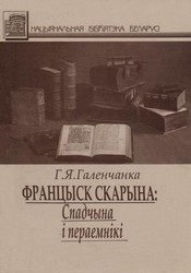 Францыск Скарына: Спадчына і пераемнікі / аўтар-склад. Г.Я. Галенчанка; [рэд. Т.І. Рошчына]; Нацыянальная бібліятэка Беларусі. — Мінск: Красiка-Прынт, 2002. — 175 с. ББК 63.3(4Беи)45 ББК 91.9:63 Паказальнік змяшчае апісанні спісаў з выданняў Ф. Скарыны і запісаў на яго кнігах, а таксама бібліяграфічныя матэрыялы пра беларускіх кнігадрукароў і асветнікаў — пераемнікаў Скарыны: Сымона Буднага, Васіля Цяпінскага і інш. |