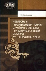 Галенчанка, Г.Я. Невядомыя і малавядомыя помнікі духоўнай спадчыны і культурных сувязей Беларусі XV – cярэдзіны XVII стст. / Г.Я. Галенчанка; Нацыянальная акадэмія навук Беларусі, Інстытут гісторыі. — Мінск: Беларуская навука, 2008. — 458 с. ББК 76.103(4БЕЛ) Першае асобнае даследаванне невядомых і малавядомых помнікаў і міжнародных культурных сувязей Беларусі ХV – сярэдзіны ХVII стст. Апісваюцца склад і выхадныя звесткі помнікаў, якія захоўваюцца пераважна ў замежных сховішчах, адзначаюцца іх асаблівасці, недаследаванныя аспекты, шыфр, бібліяграфія. Шэраг найбольш значных рарытэтаў мае разгорнутыя каментарыі. |
