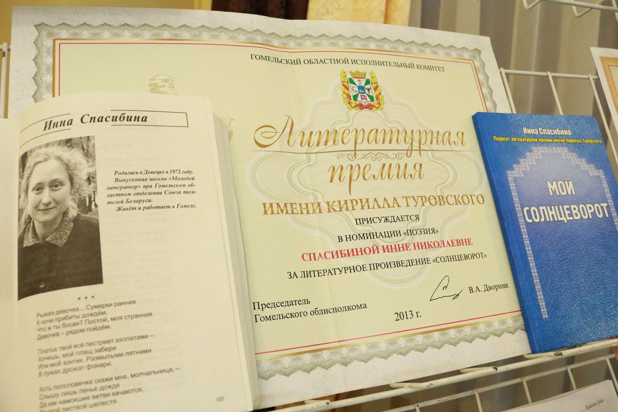Инна Спасибина – гомельская поэтесса, член Союза писателей Беларуси, лауреат областной литературной премии им. Кирилла Туровского, дипломант многочисленных международных конкурсов. Её произведения включены в сборники поэзии «Междуречье», «Пралеска», «Десна», «Берега», «Литературная Гомельщина».