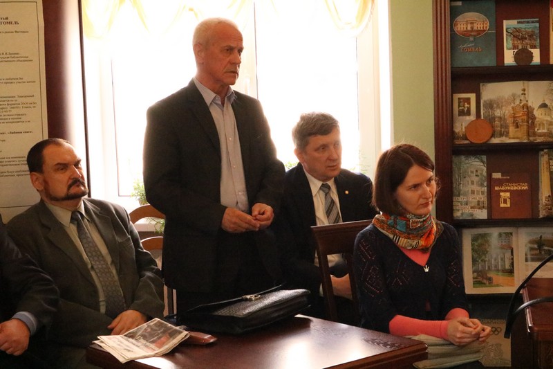 Продолжил заседание большой друг областной библиотеки, человек, известный своей беззаветной любовью к прошлому и настоящему нашего края, внесший колоссальный вклад в развитие и популяризацию краеведения в Гомеле кандидат экономических наук, доцент кафедры экономики и управления экономического факультета Гомельского государственного университета имени Ф. Скорины В. С. Селицкий. В своем выступлении он предложил обратиться к опыту работы в сфере краеведения 20-х годов минувшего столетия, проводить работу с родственниками известных земляков и активно привлекать к этой работе молодежь.