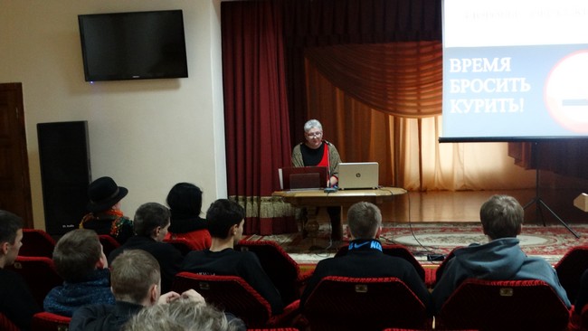 В рамках встречи проведён обзор книжной выставки «Мой выбор – не курить!», состоялась демонстрация мультимедийной презентации «Время бросать курить!» и документального фильма «Исповедь курильщика».