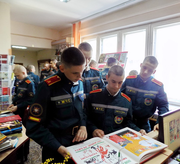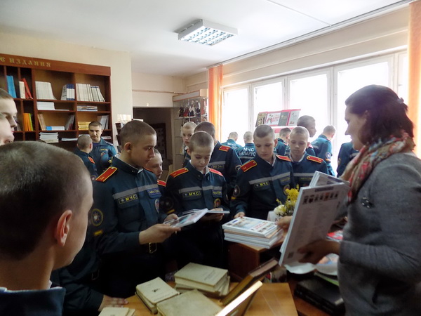 8 мая Славянскую библиотеку-филиал посетили учащиеся ГУО «Специализированный лицей при Университете гражданской защиты МЧС Республики Беларусь» и подполковник внутренней службы, начальник 1-го курса Борисевич Андрей Михайлович.