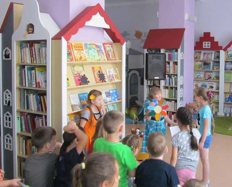 Чтобы вернуть любимые книги, книгочеям пришлось выдержать ряд испытаний, чтобы вспомнить произведения, в которых упоминаются цвета, а также встретиться с литературными героями: Красной Шапочкой и Незнайкой. Сказочные гости потешили ребят веселыми конкурсами и викторинами.