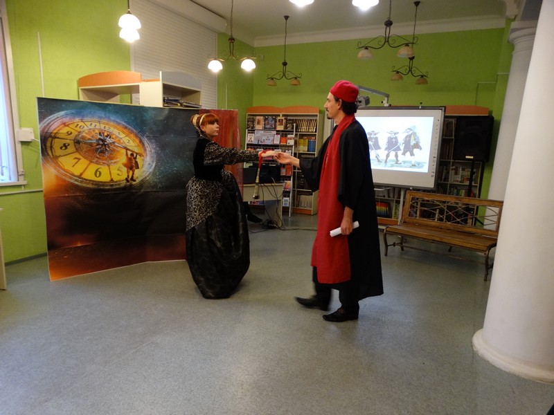 Изюминкой «Библиосумерек» стала музыкально-театрализованная программа «Путешествие с Книгой Времени», во время которой юные читатели смогли побывать в прошлом, настоящем и будущем, а также увидеть любимых литературных героев и исторические личности.