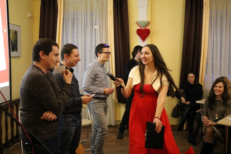Гостей ожидала насыщенная программа – квесты, песни о любви, шикарная фотозона, подготовленная художником Светланой Батраковой и сотрудниками библиотеки. Историю Дня Святого Валентина и интересные факты, связанные с традициями празднования этого дня в разных странах, слушали внимательно и с интересом, а зажигательные конкурсы, которые организовала ведущая Вера Гамоля, подарили много веселых минут.