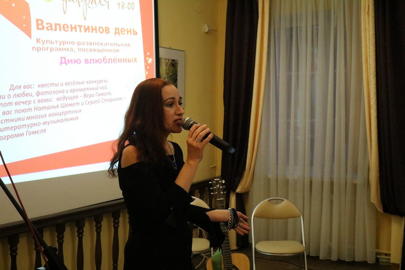 Прозвучали всем известные, популярные песни о любви и авторские композиции в исполнении Натальи Шемет, известных исполнителей, поэтов и авторов музыки Сергея Старикова и Вячеслава Кизина.