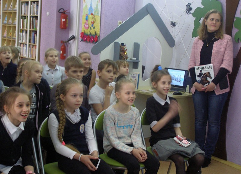Отвечая на вопросы викторины, ребята узнали о самых необычных, отважных и весёлых лошадях, которых можно встретить в кино, мультфильмах и на книжных страницах. В этом детям помогли книги «Сивка-бурка», «Лошадь молочника» Д. Биссета, «Конёк-горбунок» П. Ершова, «Сказка про Зелёную лошадь» Ю. Коваля, «Лошадь, которая потеряла очки» Х. Мякели, «История о старике Кулебякине, плаксивой кобыле Миле и жеребёнке Равкине» Л. Улицкой, «Игого, или Путешествие с говорящей лошадкой» Л. Яхнина, «Найти белую лошадь» Д. Кинг-Смита. Также ребята прочитали поучительные рассказы К. Ушинского «Спор животных» и Л. Толстого «Упрямая лошадь».