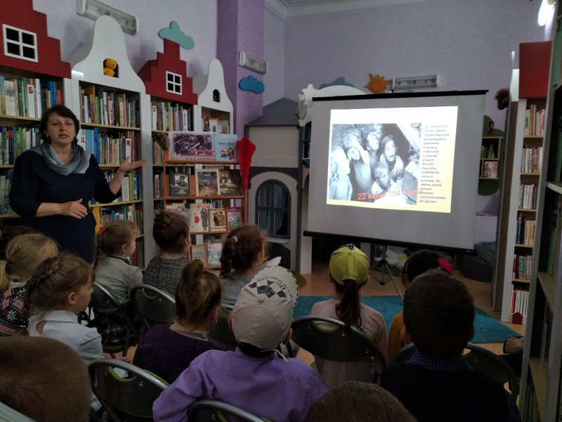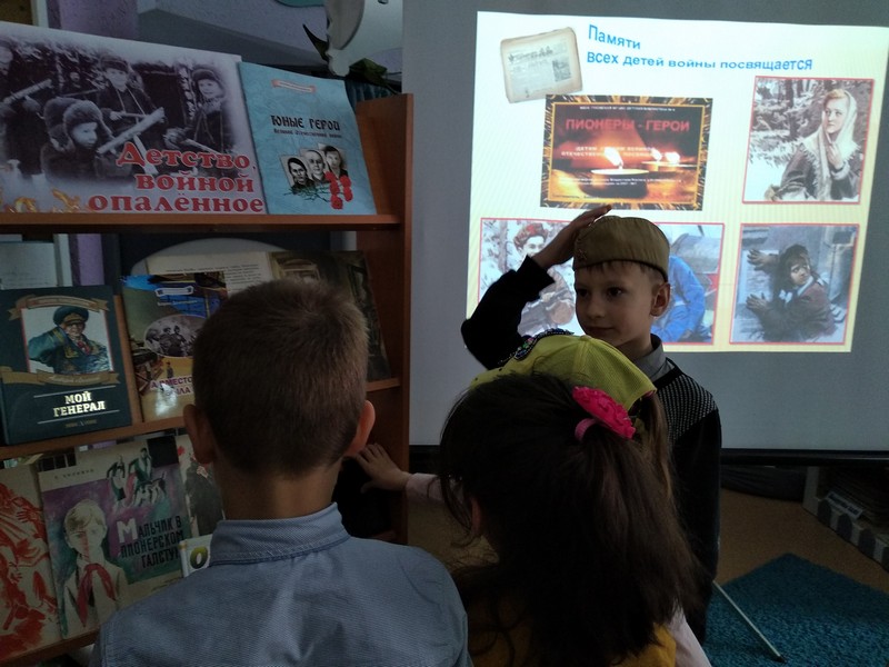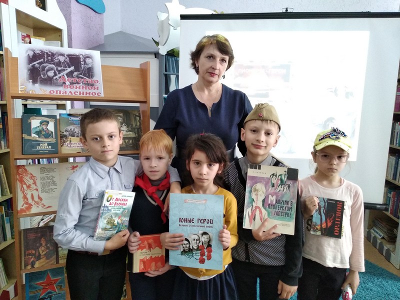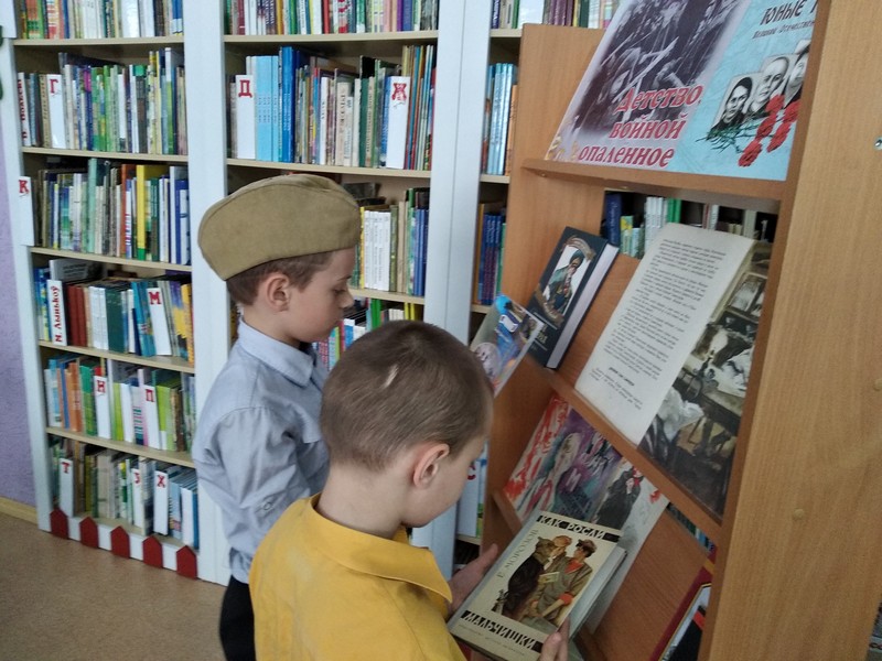 Для ребят была подготовлена выставка «Детство, войной опалённое», книги с которой юные читатели взяли домой, проникнувшись патриотическим настроем мероприятия.
