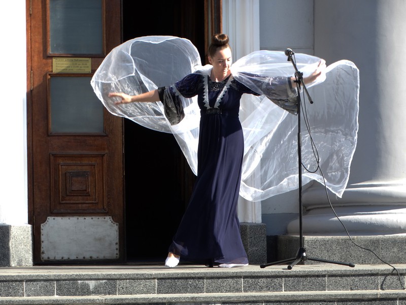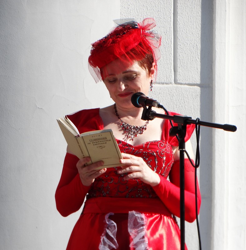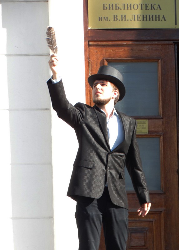 Образ романтического Пушкина создали в оригинальном пластическом этюде сотрудники библиотеки Николай Скинтиян и Вера Гамоля (образ Музы, автор идеи и постановщик этюда).