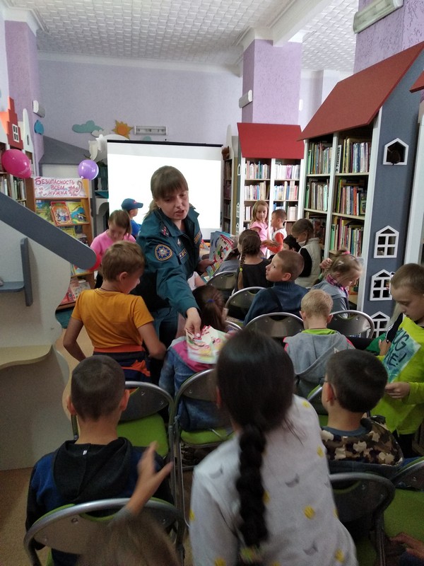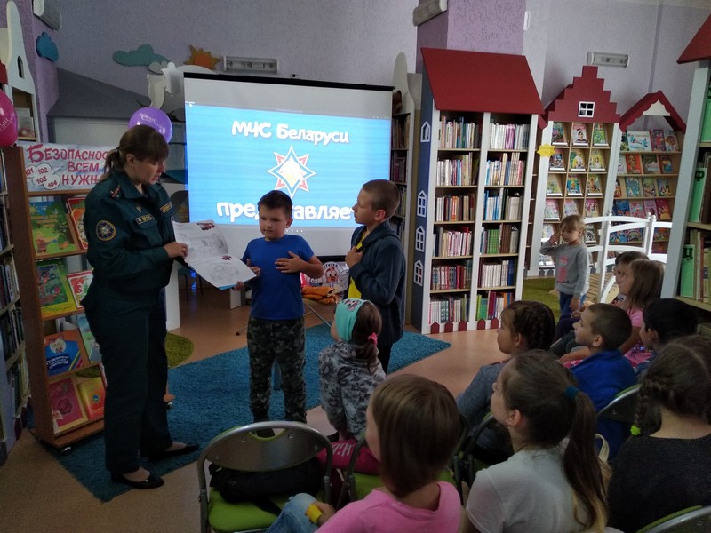 В рамках ежегодной республиканской акции «Каникулы без дыма и огня» в отделе обслуживания учащихся 1-5 классов состоялся урок-предупреждение «Знать обязан гражданин важный номер 101», который провела старший инспектор городского отдела по чрезвычайным ситуациям Марина Сергеевна Шевцова. В интерактивной форме ребята из оздоровительных лагерей СШ № 7 и 72 узнавали самые главные аспекты безопасного лета: как вести себя на водоемах, в лесу, в общественных местах. Отдельно Марина Сергеевна остановилась на проблеме детской шалости с огнем и вместе с ребятами повторила правила поведения при пожаре. Участвуя в интерактивных конкурсах, дети смогли проявить и закрепить свои знания по безопасному поведению, узнали с какими опасными предметами лучше не играть. Все участники встречи получили в подарок памятную наглядно-изобразительную продукцию, а участники конкурсов – обучающие раскраски и книги.