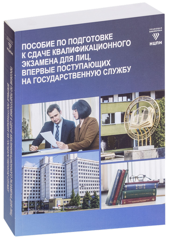Пособие по подготовке к сдаче квалификационного экзамена для лиц, впервые поступающих на государственную службу / И. П. Сидорчук [и др.] ; под общей редакцией А. В. Ивановского. – Минск : Национальный центр правовой информации Республики Беларусь, 2019. – 424 с. – (Правовая библиотека НЦПИ).