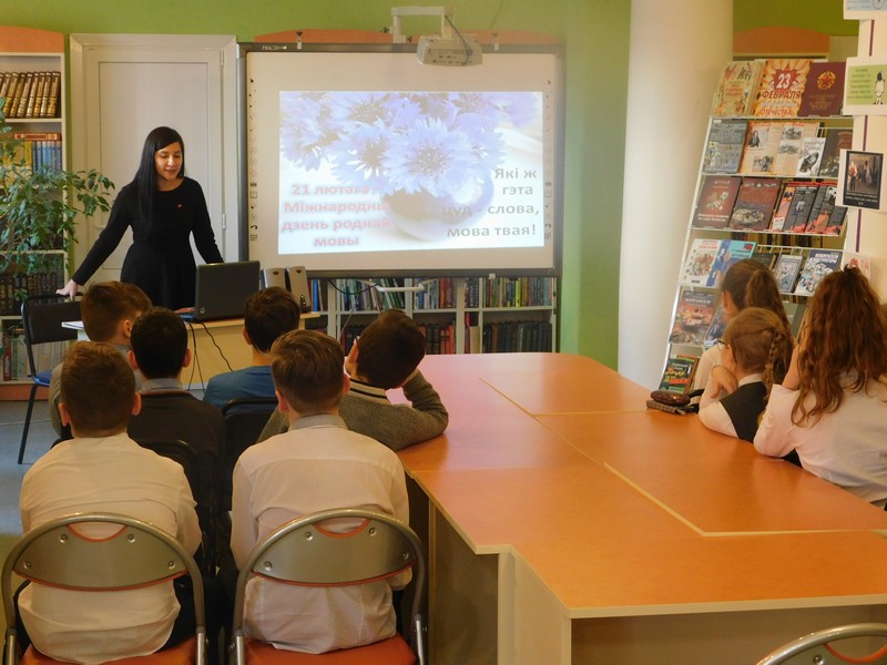 У гэты дзень аддзел абслугоўвання вучняў 6–9 класаў запрасіў сваіх чытачоў на моўны турнір «Любі, шануй, ведай роднае слова», каб яшчэ раз засяродзіць увагу нас, беларусаў, на родным слове.