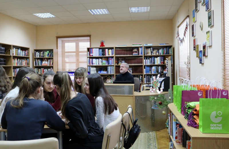 5 января в отделе литературы на иностранных языках состоялся интеллектуальный турнир «Что? Где? Когда?» для трех команд из областного лицея и СШ № 49.