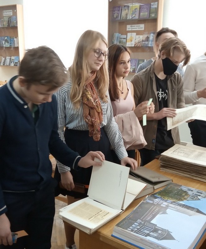 Учащиеся с интересом рассматривали редкие издания, хранящиеся в фонде библиотеки: уникальный фотоальбомом летописи Великой Отечественной войны «Только документы», красочный фотоальбом, отличающийся искусством оформления, «Беларусь замковая», но особенно впечатлило ребят старинное раритетное издание – Елизаветинская Библия ХVIII века.
