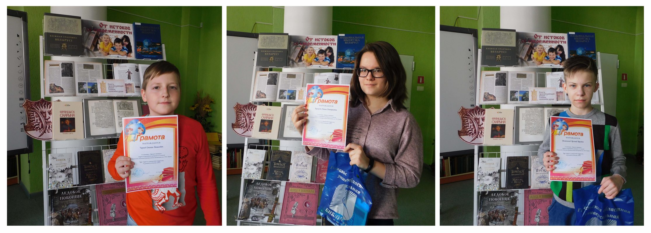Библиотекари поблагодарили своих читателей за активность и верность библиотеке, сказали о каждом несколько теплых слов. Юные читатели в ответном слове выразили свои чувства, порекомендовали произведения любимых авторов, получили дипломы победителей и памятные сувениры от Гомельской областной универсальной библиотеки им. В. И. Ленина.