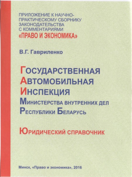 Гавриленко, В. Г. Государственная автомобильная инспекция Министерства внутренних дел Республики Беларусь : юридический справочник / В. Г. Гавриленко ; [под научной редакцией Н. И. Ядевич]. – Минск : Право и экономика, 2016. – 374 с.. – (Приложение к научно-практическому сборнику законодательства с комментариями “Право и экономика”).