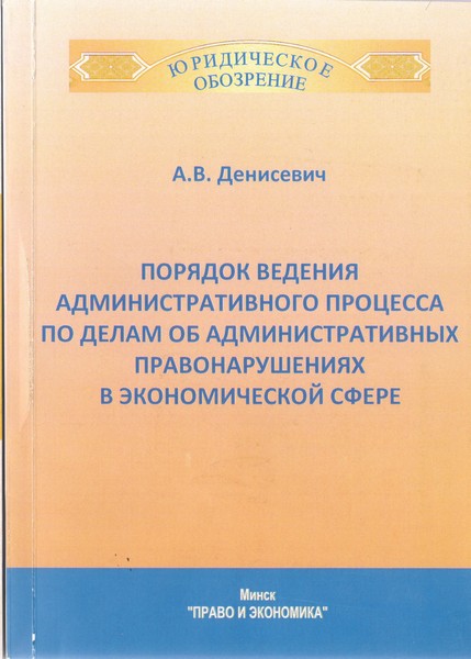 Денисевич, А. В. Порядок ведения административного процесса по делам об административных правонарушениях в экономической сфере / А. В. Денисевич. – Минск : Право и экономика, 2014. – 340, [1] с.. – (Серия “Юридическое обозрение”).