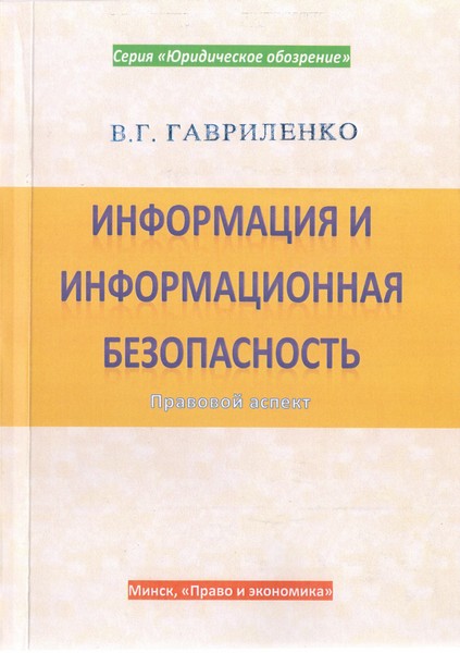 Гавриленко, В. Г. Информация и информационная безопасность. Правовой аспект / В. Г. Гавриленко ; [под научной редакцией Н. И. Ядевич]. – Минск : Право и экономика, 2014. – 320, [1] с.. – (Серия “Юридическое обозрение”).