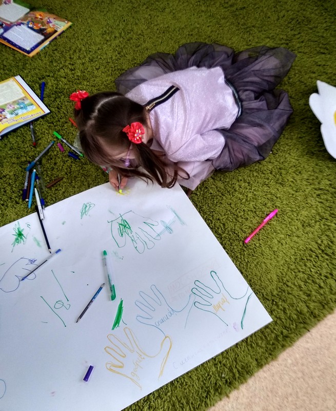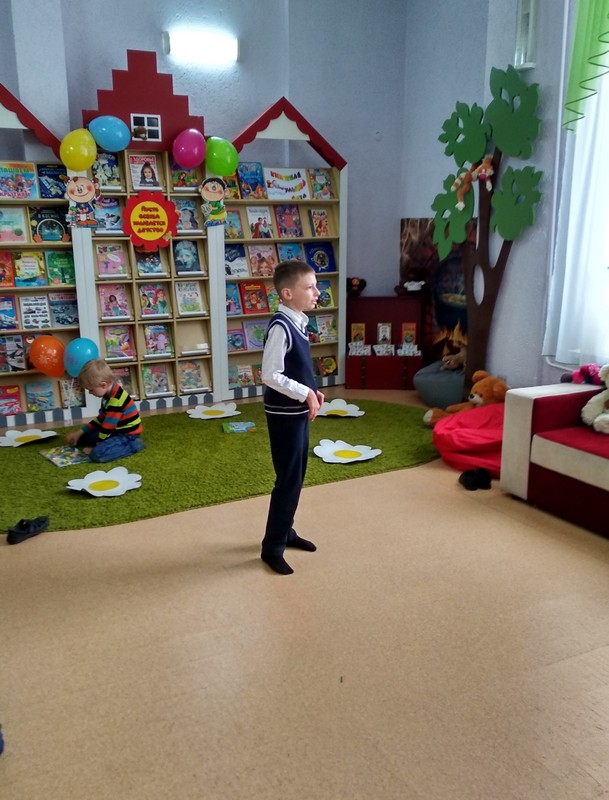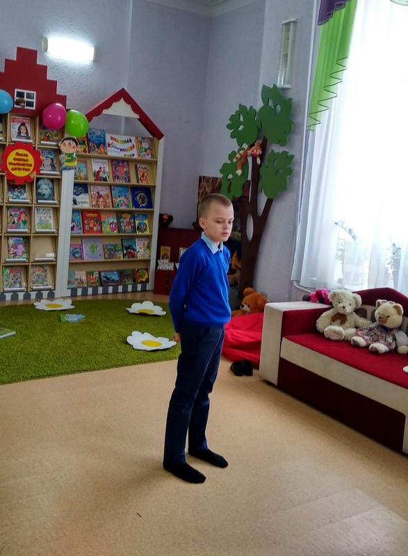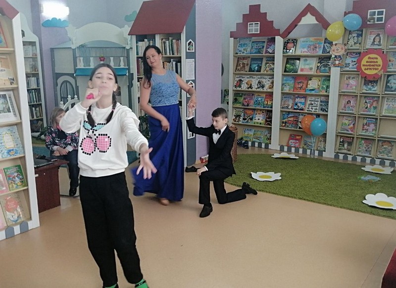 В дружной компании своих родителей и библиотекарей дети разгадывали загадки, приветствовали гостью праздника – красавицу Лето – и сами пытались показать для всех свои достижения. Каждый из ребят, присутствовавших на мероприятии, талантлив по-своему. Максим Евтухов выразительно прочитал стихотворение «Черёмуха», Родион Гриб продемонстрировал гимнастическое упражнение, а Платон Машевский прочёл стихи на английском языке! Варя Гриб постеснялась показать свой номер, но зато активно приняла участие в оформлении общего плаката, раскрашивая детские ладошки. Алексей Ананьев составил пару своей маме Елене, и вместе они трогательно станцевали вальс под песню «Крылатые качели», затронув тонкие струнки души каждого.