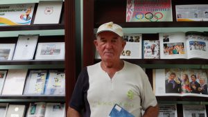 На фото в день открытия выставки – Леонид Григорьевич ГЕЙШТОР , заслуженный мастер спорта СССР в гребле на байдарках и каноэ, Олимпийский чемпион 1960 года, чемпион мира 1963 года, двукратный чемпион Европы.