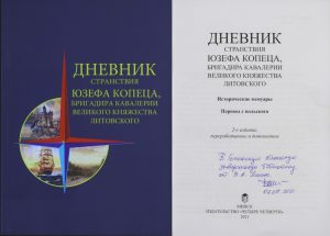 В канун профессионального праздника белорусских библиотекарей мы получили прекрасный подарок: к нам опять поступили 2 книги от Владимира Александровича. Одна из них – «Дневник странствия Юзефа Копеца, бригадира кавалерии Великого Княжества Литовского». Это исторические мемуары, изданные в Минске ограниченным тиражом в количестве 30 экземпляров в переводе дарителя.