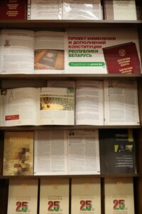 В библиотеке подготовлены книжные выставки «Проект изменений и дополнений Конституции Республики Беларусь» в отделе абонемента и информационно-библиографическом отделе. На выставках представлены действующая Конституция Республики Беларусь, проект изменений и дополнений Конституции Республики Беларусь для всенародного обсуждения, книги и статьи из периодических изданий по теме.