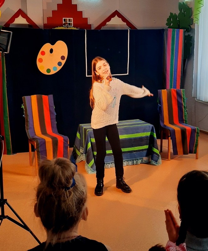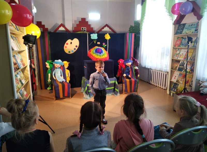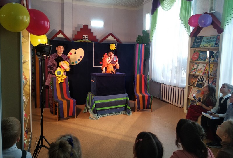 Сюрпризом для всех стало выступление давних и верных друзей библиотеки – артистов театра «Вырастайка» Гомельской областной филармонии Татьяны Щербак и Игоря Юрлова. Ярко и артистично они ввели юных читателей и их родителей в мир цветных красок, талантливо и профессионально представив спектакль «Радужная сказка».