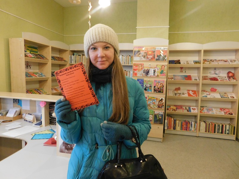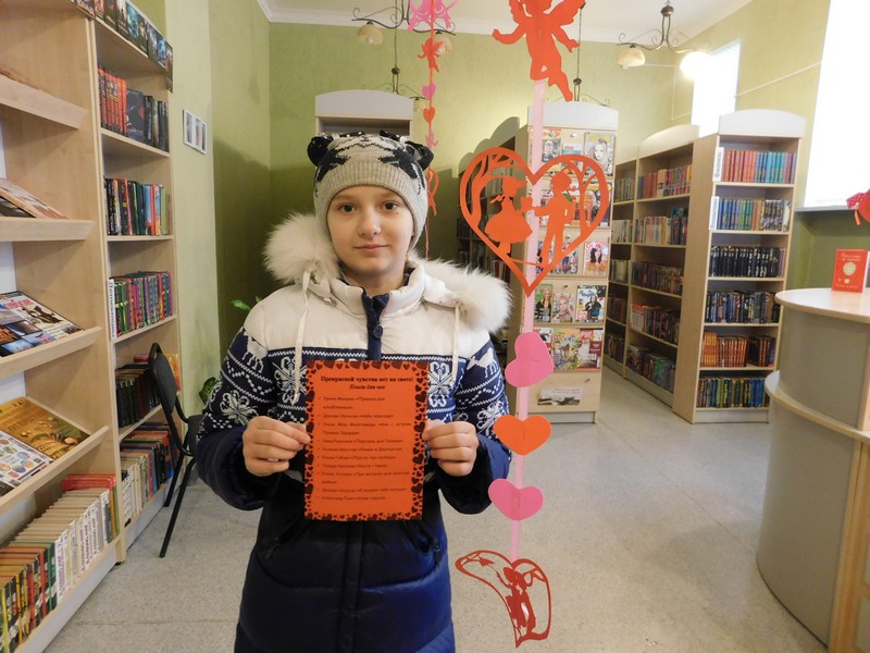 В этот день всех посетителей отдела библиотекари поздравили закладкой – валентинкой и вручили рекомендательные списки книг «Прекрасней чувства нет на свете».