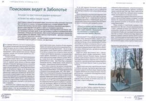 Солонец, Г. Поисковик ведёт в Заболотье / Г. Солонец // Беларуская думка. – 2022. – № 1. – С. 24–28.