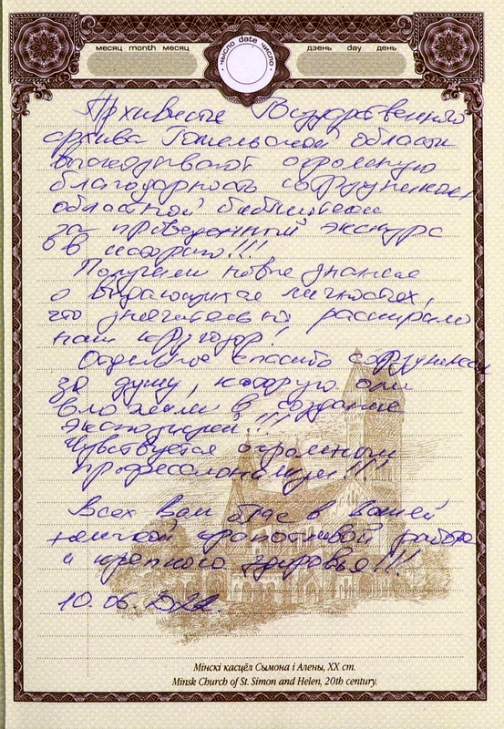 В рамках республиканской акции «Вандруй. Адчуй. Натхняйся» Гомельскую областную библиотеку посетила делегация областного архива. Сотрудники отдела краеведения провели для посетителей экскурсию по Литературному музею писателей Гомельщины, Мемориальному залу народного писателя Беларуси Андрея Макаёнка. Вниманию гостей был предложен также обзор выставки репродукций художественных работ из фондов Государственного литературного музея Янки Купалы «Жыву я ў сваім родным краі», посвящённой 140-летнему юбилею поэта. Свои эмоции и впечатления от увиденного представители делегации оставили в «Книге почётных гостей» Мемориального зала.