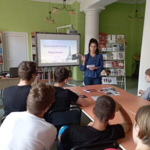 16 июня в рамках проекта «По странам и континентам» в отделе обслуживания учащихся 6–9 классов прошёл познавательный час «Чудесный край – Франция».