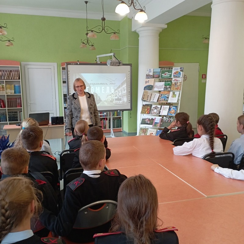 К 880-летию первого упоминания Гомеля в Ипатьевской летописи в юношеском отделе прошёл краеведческий час «Мой маленький город с названьем неброским». Библиотекарь рассказала учащимся об истории города, которой стоит гордиться и помнить, привела удивительные исторические факты. Ребятам интересно было узнать о зданиях и объектах, которые сохранились до сегодняшнего дня, и о постройках, ушедших в былое, например, на площади имени Ленина. Школьники посмотрели фильм из цикла «Города Беларуси. Гомель».