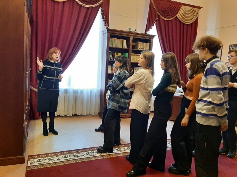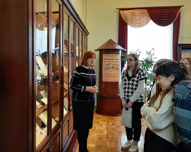 Участниками первого урока мужества и патриотизма стали учащиеся 10 «А» класса СШ № 24. После знакомства с экспозициями Литературного музея писателей Гомельщины и Мемориальным залом народного писателя БССР Андрея Макаёнка состоялась встреча старшеклассников с белорусскими писателями: председателем Гомельского областного отделения Союза писателей Беларуси, заслуженным деятелем культуры Республики Беларусь Владимиром Гавриловичем, членом Союза писателей Беларуси и Белорусского союза журналистов Михаилом Болсуном, белорусским поэтом, прозаиком, публицистом, детским писателем Анатолием Зековым.