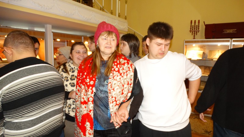 Завершилась экскурсия возле книжной выставки «Мир без ограничений», на которой представлены книжные материалы и документы международных организаций, раскрывающие правовые нормы и стандарты, гарантии социальной защиты в отношении инвалидов; описывающие опыт работы, направленной на поддержку инвалидов и членов их семей, медицинскую и психологическую реабилитацию. Дополняют выставку творческие работы участников мастерской «Изнанка». Красивые текстильные куклы, созданные по мотивам белорусской народной сказки «Як мужык гуся дзяліў», разнообразные изделия из глины поражают искусным исполнением.