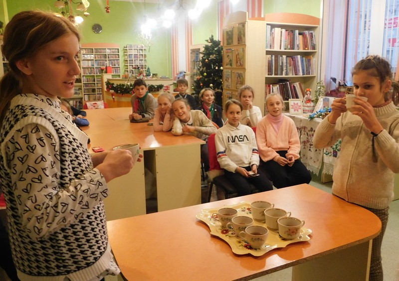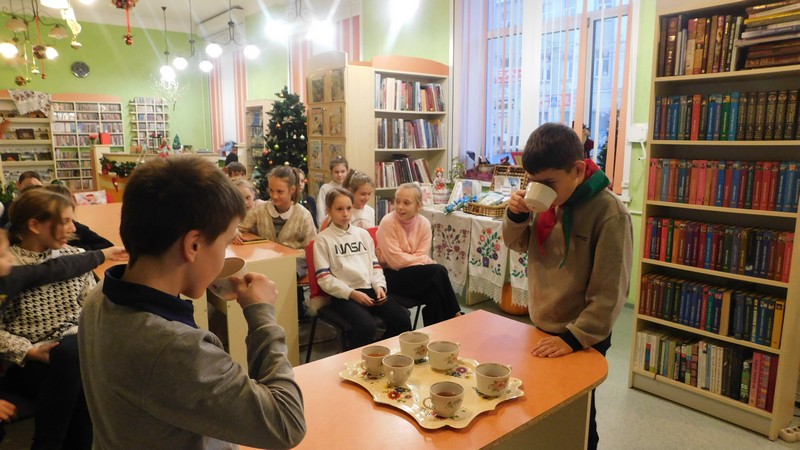 В этот день отдел обслуживания учащихся 6–9 классов пригласил на душевное чаепитие «В чае мы души не чаем» учащихся СШ № 24. Начались чайные посиделки увлекательным экскурсом в историю появления и развития чайной традиции в Китае – родине чая. Библиотекари рассказали школьникам о том, как чай проник в Беларусь, об изобретении главного символа русского чаепития – самовара, о предназначении так называемой «бабы на чайник» (специальной грелки в виде женщины в пышных ярких юбках), об изобретении чайного пакетика и о многом другом.
