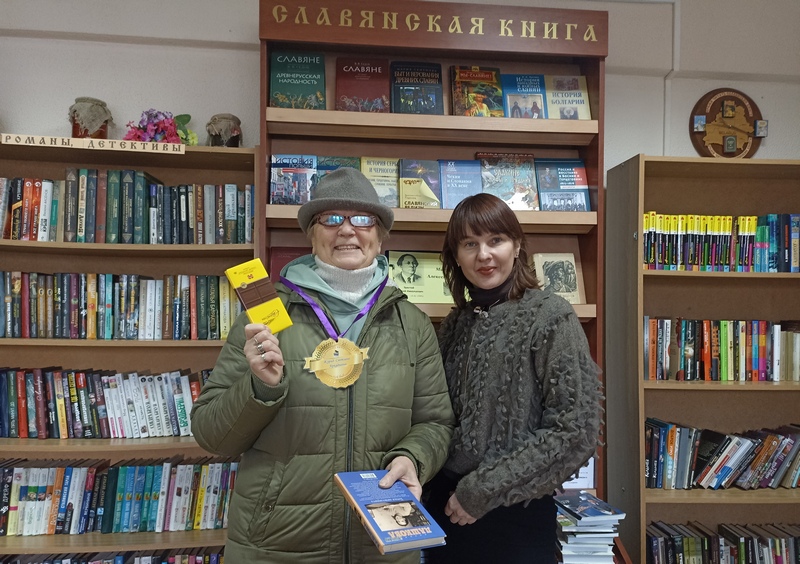 В 2022 году самыми активными нашими читателями стали Наталья Александровна Мазуренко и Светлана Аркадьевна Журид. Они получают от библиотеки сладкий приз и знак отличия «Читатель года».