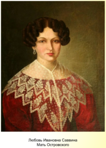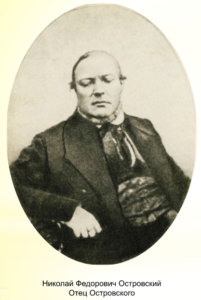 вышедшего из духовного звания. Его отец, Николай Фёдорович Островский, человек острого ума, образованный (окончил духовную семинарию), трудолюбивый, быстро продвигался по службе и успешно занимался частной практикой: был адвокатом, вёл дела купцов. Это дало ему возможность уже в 1825 г. построить в Замоскворечье собственный дом и приглашать для своих детей домашних и приходящих учителей. Имелась богатая библиотека, которой пользовался сын Александр. В 1839 г. в чине коллежского асессора Николай Фёдорович стал потомственным дворянином. Во второй половине 40–х гг. им были приобретены четыре небольших имения. В деревне Щелыково Костромской губернии семья Островских поселилась на постоянное жительство.