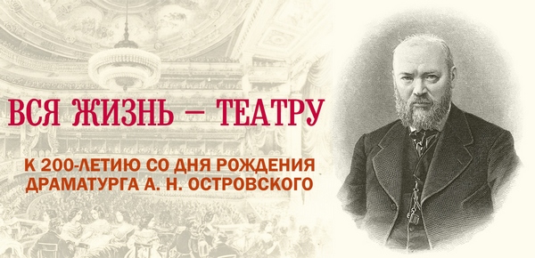 К 200-летию со дня рождения АЛЕКСАНДРА ОСТРОВСКОГО (1823–1886), известного русского писателя, талантливого драматурга, основоположника русского национального театра. Он сочинил 47 пьес, защищал авторские права драматургов и разработал программу обучения для драматических классов.