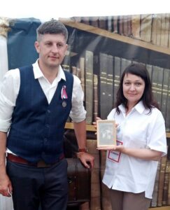 Во время проведения Международного фестиваля «Славянское единство – 2023» Гомельская областная библиотека получила прекрасный подарок от Виталия Короткого – поздравительную открытку, датированную 8 июля 1912 г. Что примечательно, в своё время почтовая карточка была выслана из Гомеля в Санкт-Петербург в дом, находящийся по соседству с бывшим особняком Ивана Фёдоровича Паскевича, сохранившаяся часть книжного собрания которого ныне составляет основу Музея редкой книги областной библиотеки.