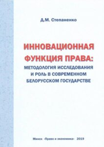 Степаненко, Д. М. Инновационная функция права: методология исследования и роль в современном белорусском государстве / Д. М. Степаненко. – Минск : Право и экономика, 2019. – 237, [1] с.