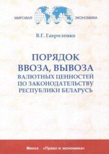 Гавриленко, В. Г. Порядок ввоза, вывоза валютных ценностей по законодательству Республики Беларусь / В. Г. Гавриленко ; [под научной редакцией П. Г. Никитенко ; Институт экономики НАН Беларуси]. – Минск : Право и экономика, 2020. – 156 с.
