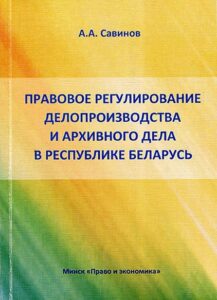 Савинов, А. А. Правовое регулирование делопроизводства и архивного дела в Республике Беларусь : [монография] / А. А. Савинов. – Минск : Право и экономика, 2022. – 222, [1] с.