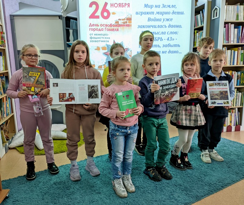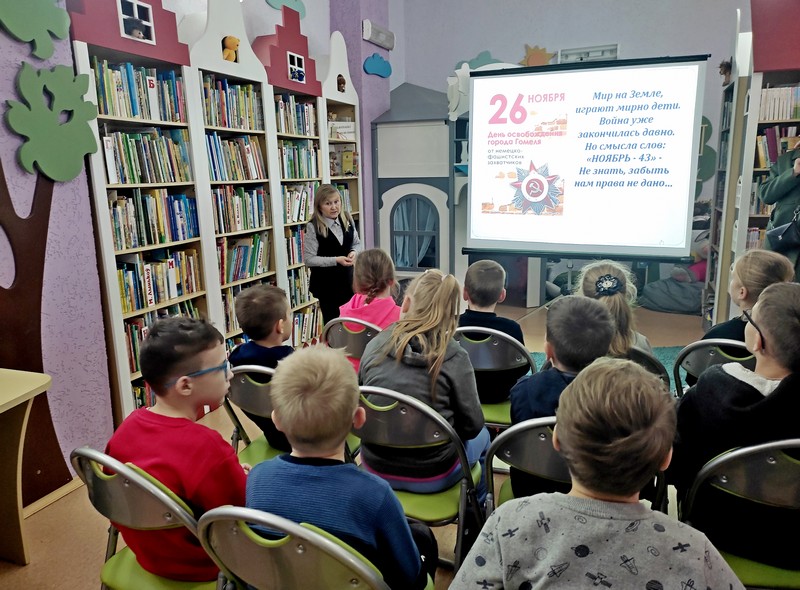 В преддверии празднования 80-летия освобождения города Гомеля от немецко-фашистских захватчиков с 20 по 24 ноября для юных читателей отдела обслуживания учащихся 1–5 классов прошёл цикл уроков мужества «В названии улицы – имя героя».