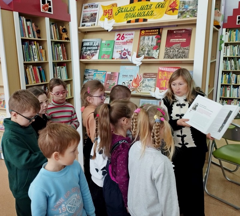 Большой интерес у юных читателей вызвали книги о подвигах героев Великой Отечественной войны: ребята внимательно слушали обзоры книг и выбирали для чтения в кругу семьи.