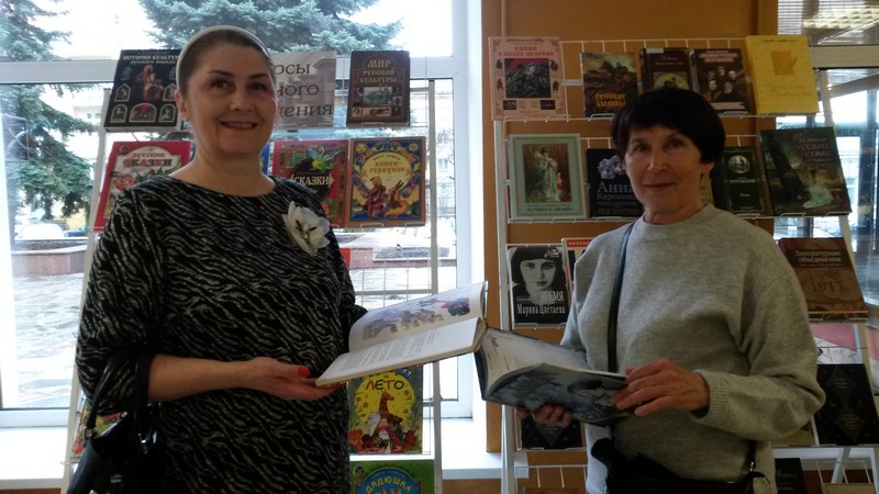 Вниманию гостей городского центра культуры сотрудники общего читального зала предложили книжную выставку «Ресурсы духовного возрождения», на которой были представлены красочные издания, раскрывающие богатое литературное и художественное наследие России. С интересом посетители знакомились с произведениями известных русских писателей и поэтов, которые тесно связаны с белорусской культурой и оказали существенное влияние на национальную литературу Беларуси. Особенно впечатлила коллекция книг, полученных в дар от российских библиотек-партнёров.
