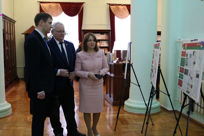 Директор библиотеки Татьяна Забияко познакомила гостей с выставочным проектом «Маршрутами нашего Президента», который создан по газетным публикациям из печатных средств массовой информации.