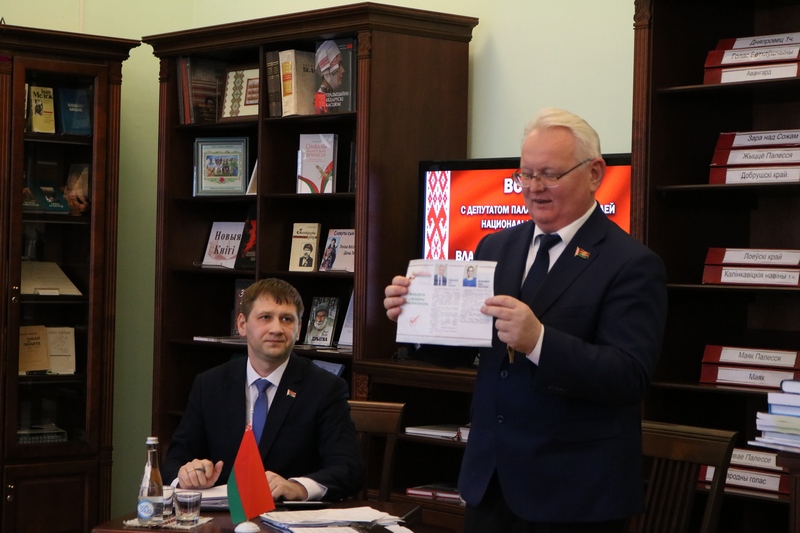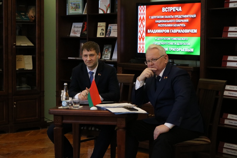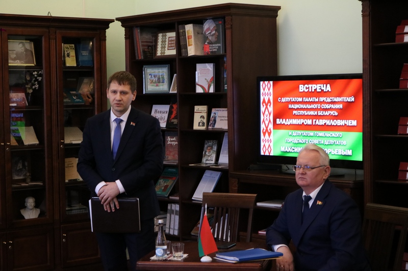 11 января состоялась информационная встреча депутата Палаты представителей Национального собрания Республики Беларусь Владимира Гавриловича и депутата Гомельского городского Совета депутатов Максима Григорьева с работниками Гомельской областной библиотеки.